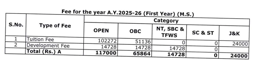 Open category students admitted through CAP can apply for the EBC scholarship. Government schemes are available in September, and students with parents who are laborers or own less than 2.5 acres of land may qualify for state hostel scholarships. Tuition fees are usually under INR 1 lakh per year, with installment options available. The college also promotes on-campus placement opportunities and company interviews.