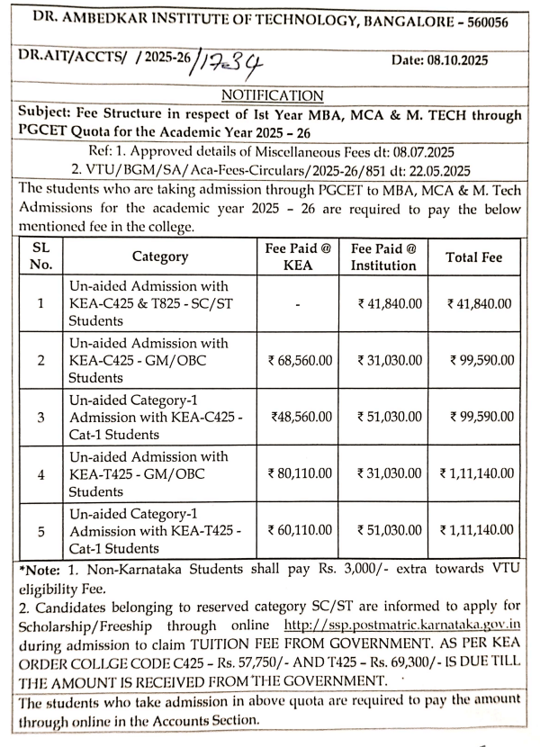 | Reporting at the Allotted Colleges for Final Round Karnataka PGCET Admission 2025 [MCA] | Nov 13, 2025 |
