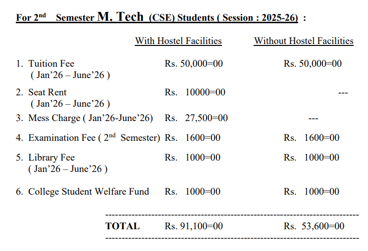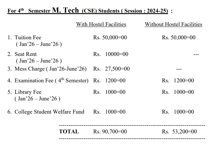 | Semester Wise Fees | ₹66200 | ₹53600 | ₹53600 | ₹54600 |