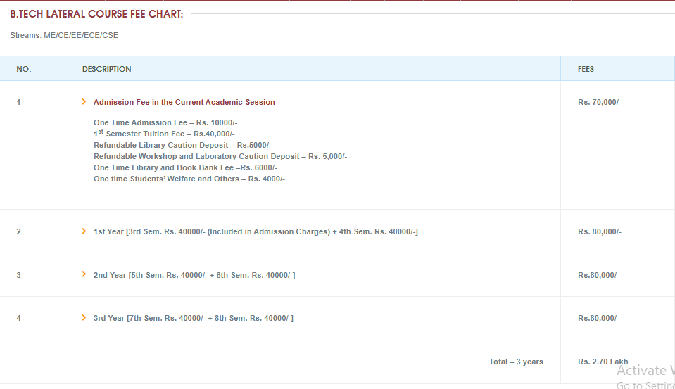 | Semester Wise Fees | ₹70000 | ₹40000 | ₹40000 | ₹40000 | ₹40000 | ₹40000 |