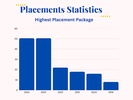 The college offers a mixed placement experience, with varying outcomes across different departments. Students become eligible for placements from the 5th or 7th semester, depending on the program. The highest package reported is INR 50.50 LPA, while the average package is around INR 5.20 LPA. Approximately 60-90% of students secure placements, with a significant focus on CS, IT, and Electronics fields.