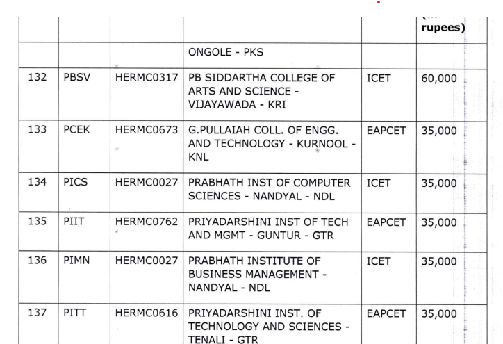 - Tuition fee is as regulated by APHERMC/APSCHE for the current academic year; subject to revision