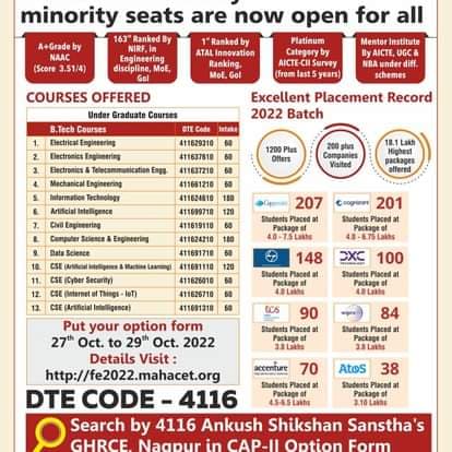 Overall, GHRCE provides a supportive educational environment with strong placement support and numerous financial aid options.