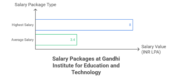 Gandhi Institute for Education and Technology has not yet released its placement report for 2025. The college assures a 100% placement rate. The highest salary package offered during Gandhi Institute for Education and Technology's previous Placement was INR 8 LPA, while the average package was INR 3.4 LPA, as per research. The top recruiters for Gandhi Institute for Education and Technology Placements are TCS, CED, IT Plus Point, Dream Gains, Qualitas Global, Renew Power, Technosoft Solutions, Suzlon, RDC Concrete, One Paper, and Key Software Solutions.