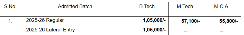Starting from the third year, students are eligible for campus placements, and final-year students must complete projects evaluated at the semester's end. A student who ranks within the top 1000 in the ICET exam can qualify for a free seat.