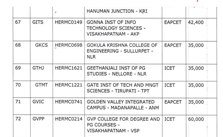 Gokula Krishna College of Engineering Sullurpet Nellore APICET Cutoff 2024 rank is 38411 for the SC category. Further, the cutoff rank is 31078 for BCD category, 27765 for OC category, Earlier, the APICET cutoff rank 2023 was 21810 for the SC category.