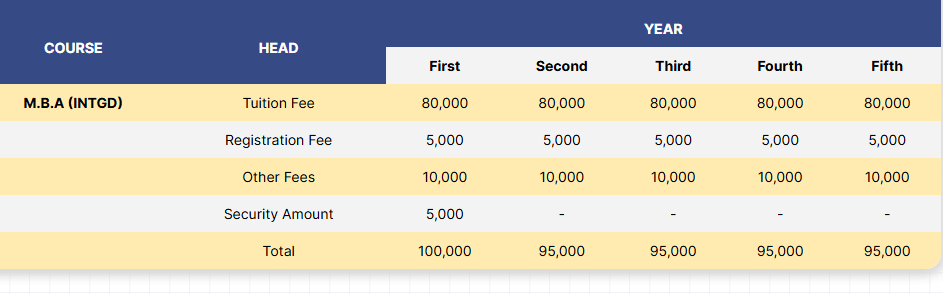 - The total fees for BBA + MBA is ₹ 4.8 Lakhs.