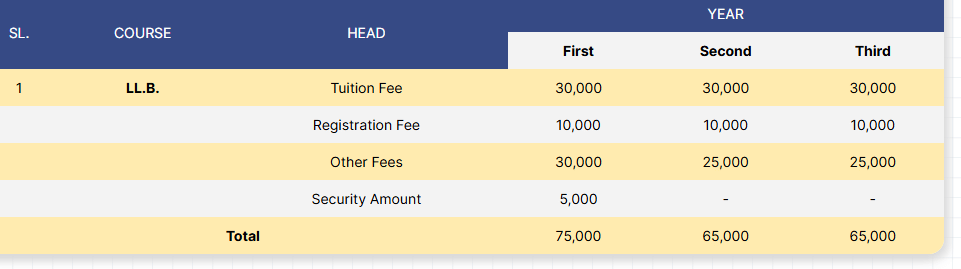 Earlier, L.L.B fees at GNIOT was ₹ 2.6 Lakhs (in 2025) for the entire course duration. This shows a fee decrease of ₹ 55,000 over the year.