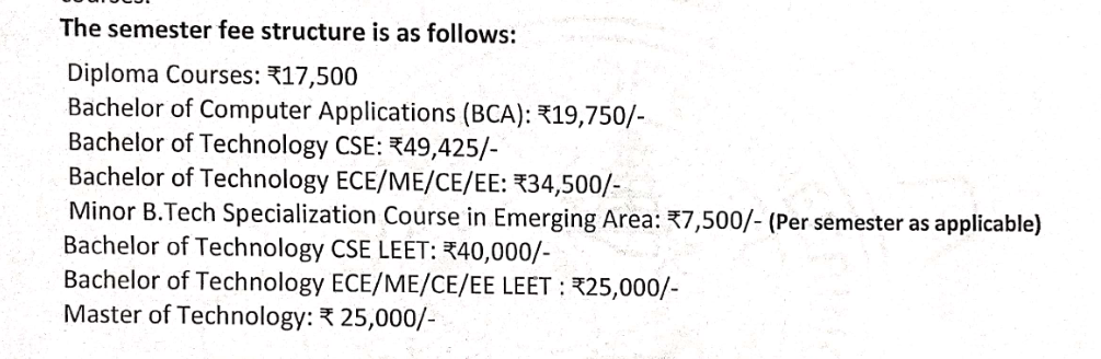 | Semester Wise Fees | 17500 | 17500 | 17500 | 17500 | 17500 | 17500 |
