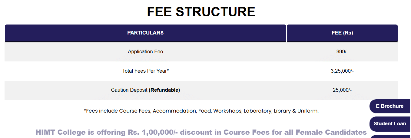 | Fees (2025 - 2026) | Year 1 (in INR) | Year 2 (in INR) | Year 3 (in INR) |