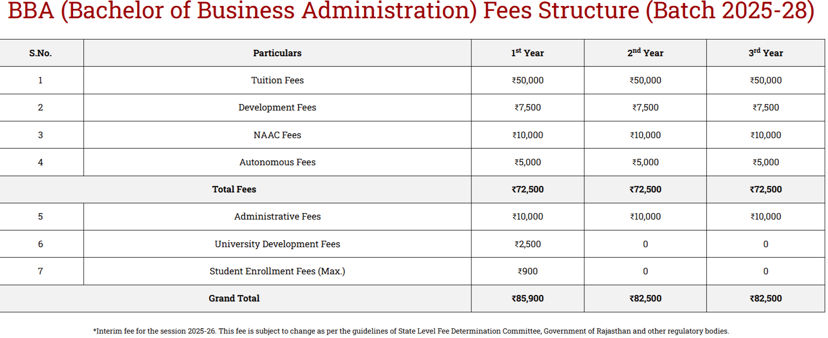 | Fees (2025 - 2026) | Year 1 (in INR) | Year 2 (in INR) | Year 3 (in INR) |