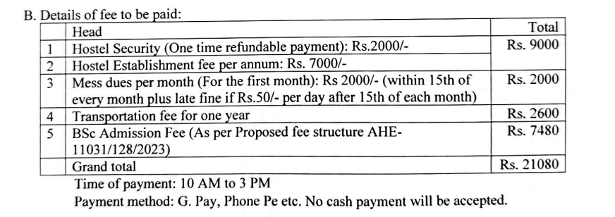 The college offers hostel facilities for both boys and girls, with a total of four hostels: three for boys and one newly built for girls. The infrastructure of the boy's hostel is adequate, while the girl's hostel is noted to be very good. Each room in the hostels accommodates three students, providing individual beds, tables, and other essentials. The annual admission fee is Rs. 8,000, and the monthly mess fee ranges from Rs.