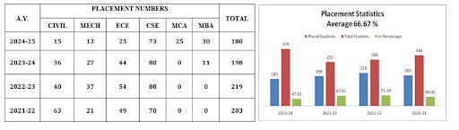 Students become eligible for campus placements from the 6th or 7th semester. Approximately 250 students from a batch have been placed in various companies. Around 30 to 40 companies visit the campus annually, with about 70% to 90% of students securing placements. Major recruiters include TCS, Infosys, Capgemini, Mindtree, and HCL, focusing on mass recruitment with average packages of around 3.25 to 3.5 lakh per annum.