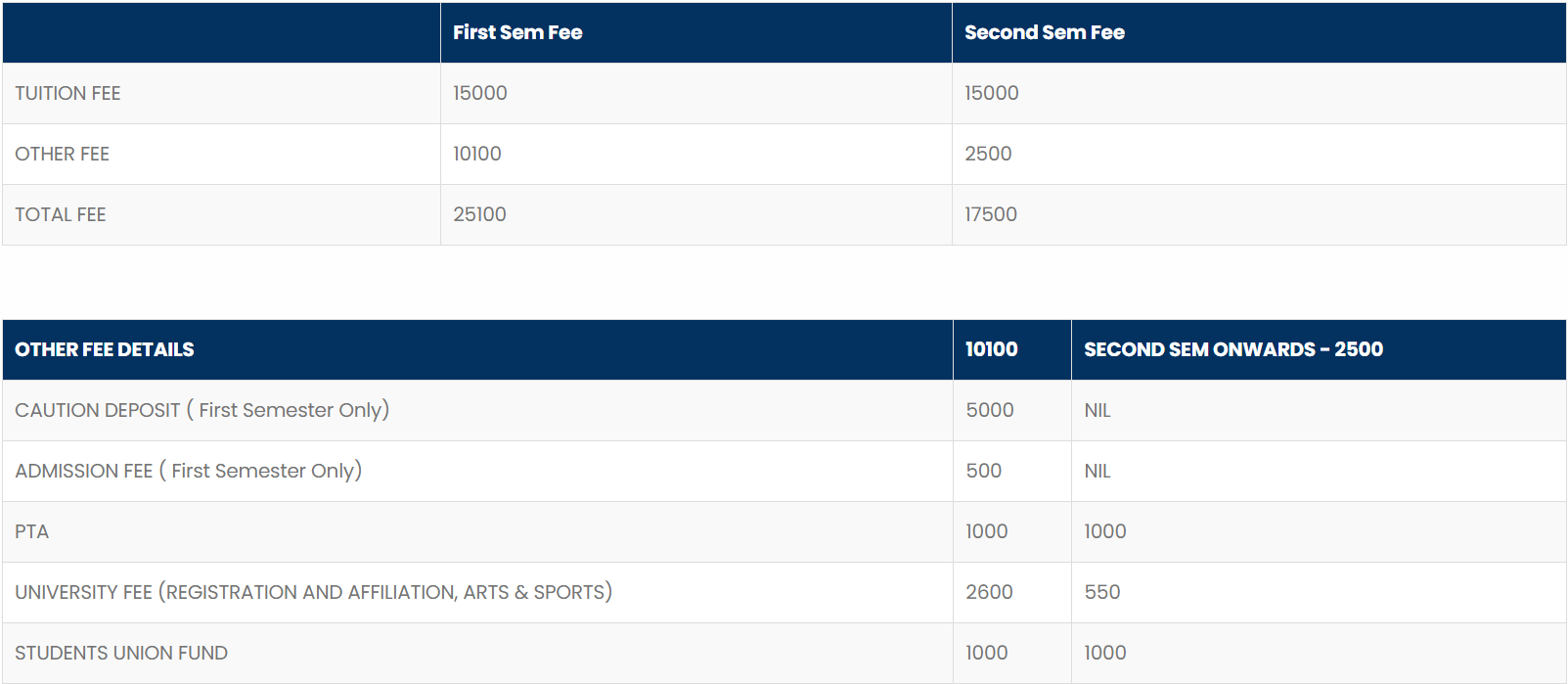 | Semester Wise Fees | ₹25100 | ₹17550 | ₹17550 | ₹17550 |