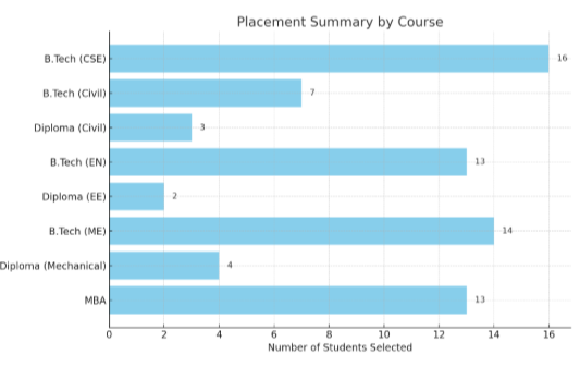 The college has shown improvement in placements with the establishment of a placement cell since the 2017-18 session. Approximately 70-80% of students are placed, with major companies like Microsoft, HCL, Wipro, and Infosys attending the job fairs. The highest package offered is 5 lakhs per annum, while the lowest is 1.8 lakhs.