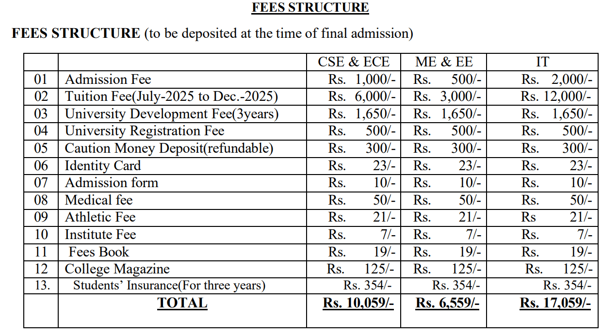 As a government institution, the college maintains stable admission fees, which are further reduced by the Students Fee Waiver Scheme. Scholarships like SVMCM, AIKASHREE, and OASIS are available for students scoring at least 60% without backlogs, with the SVMCM Scholarship offering 60,000 INR annually. For electrical engineering students, annual academic fees, including tuition and other charges, are approximately 10,000 INR. Economically disadvantaged students can receive full or partial tuition fee waivers.