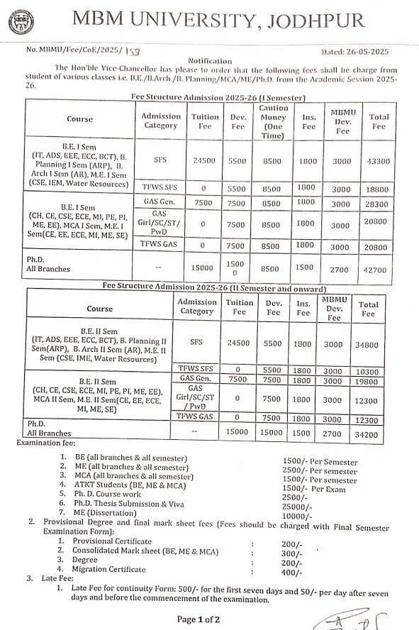 The college also focuses on internships, providing various opportunities that sometimes lead to job offers. MBM Engineering College offers relatively low tuition fees compared to other institutions. However, there is no detailed information on available scholarships or financial aid. The college occasionally hosts campus job drives, and some students secure jobs with stipends through these events.