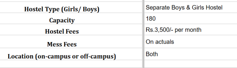 The college provides separate hostel facilities for boys and girls, with the girls' hostel located on-campus and the boys' hostel approximately 500 meters to 2 kilometers away. The hostel fees range from 9,000 to 19,800 INR per semester, with additional expenses for food, roughly 2,000 INR per month. Rooms typically accommodate 2 to 4 students, and Wi-Fi is available.