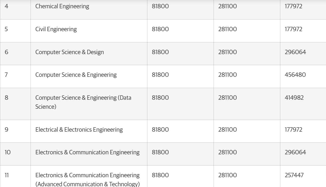 Total annual costs are under 250,000 INR, with some students reporting around 100,000 INR per year, and hostel fees at about 90,000 INR. The college is known for affordable management fees compared to other institutions. MVJCE boasts a 100% placement rate for CSE and ECE students, with good opportunities in various departments. Placements begin in the 7th semester, supported by aptitude and mock tests. Although chemical engineering placements often involve non-core companies, overall placement numbers are high.
