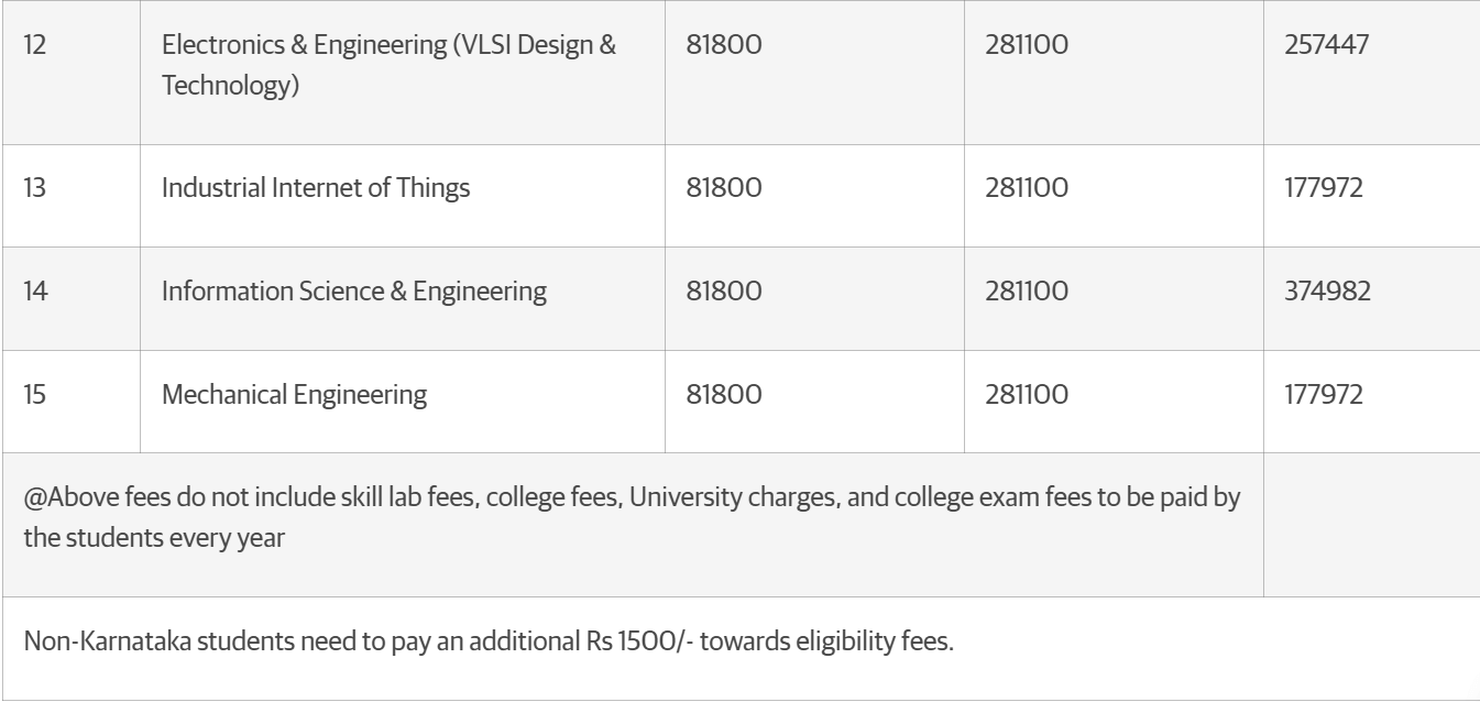 Scholarships like Vidyasiri, SSP, NSP, Santhoor, and Infosys are available, with Vidyasiri offering around 13,000 INR for SNQ admissions, and up to 98,700 INR for SC/ST students. Management students in chemical engineering pay 120,000 INR annually, while KCET students pay 114,750 INR, broken down into 92,750 INR for tuition, 10,000 INR for university charges, and 20,000 INR for college fees. Some students have yet to receive their scholarships despite ongoing registration for the second year.