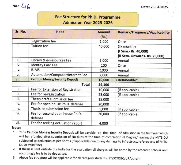 MITS Gwalior Ph.D Civil Engineering Fee has not been released yet. For reference you can check the previous year academic fees in the section below.
