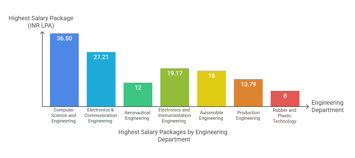 - The department-wise highest package offered during MIT Chennai Placements 2024 is depicted below. The Computer Science department recorded the highest package, followed by Electronics and Communication Engineering, and then Electronics and Instrumentation Engineering.