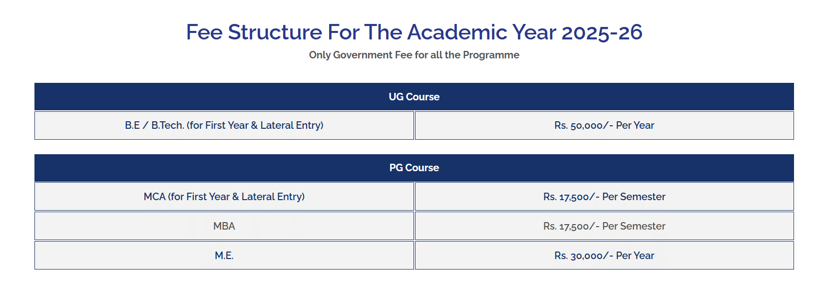 | Fees (2025 - 2026) | Year 1 (in INR) | Year 2 (in INR) | Year 3 (in INR) | |||