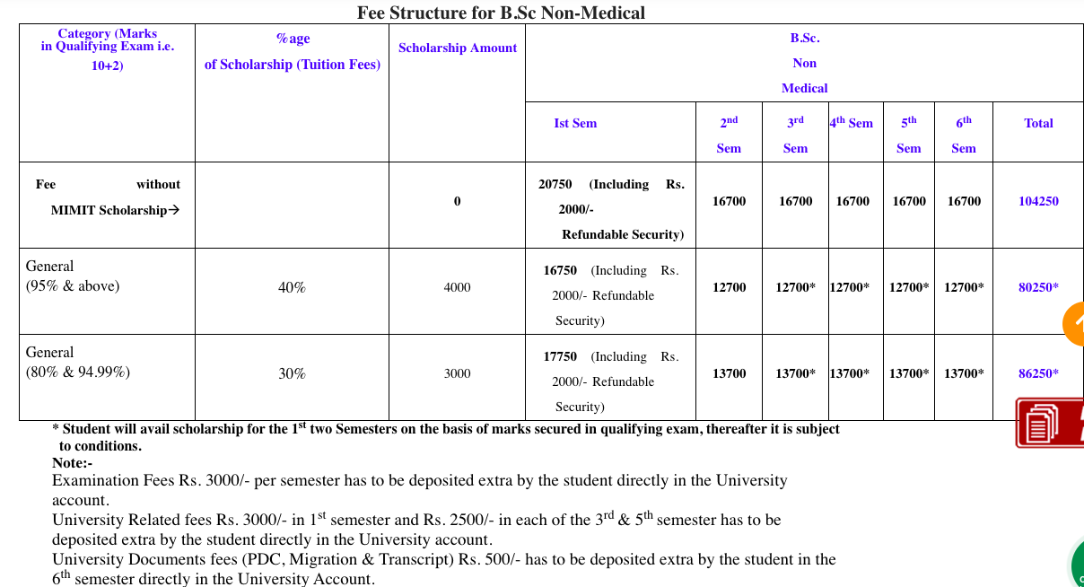 B.Sc Non-Medical at Malout Institute of Management and Information Technology is a 3 Years Degree. The course is offered On Campus as a Full Time program. Malout Institute of Management and Information Technology B.Sc Non-Medical First Year Fees is INR 46,450 for 2025.