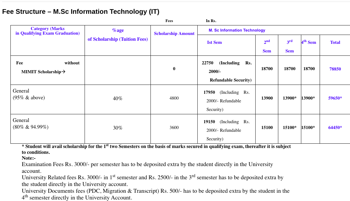The minimum eligibility for admission to M.Sc Information Technology at Malout Institute of Management and Information Technology is Graduation.
