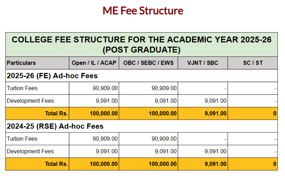 Marathwada Mitramandal's Institute of Technology Lohgaon ME Automation & Robotics fees 2025 is ₹ 2 Lakhs for the entire course duration.
