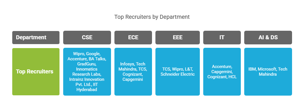 Placement rates vary, with reports indicating that between 60% to 95% of students receive job offers, often with multiple offers. Students are required to maintain a minimum of 70% for placement eligibility. Faculty provides extensive training for placements and internships, with many students receiving stipends. The college also offers significant internship opportunities, with companies like Infosys, IBM, and Accenture participating.