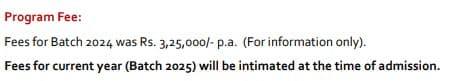 The total fee for a two-year program is Rs 600,000, considered high compared to other colleges, but justified by excellent placement opportunities.