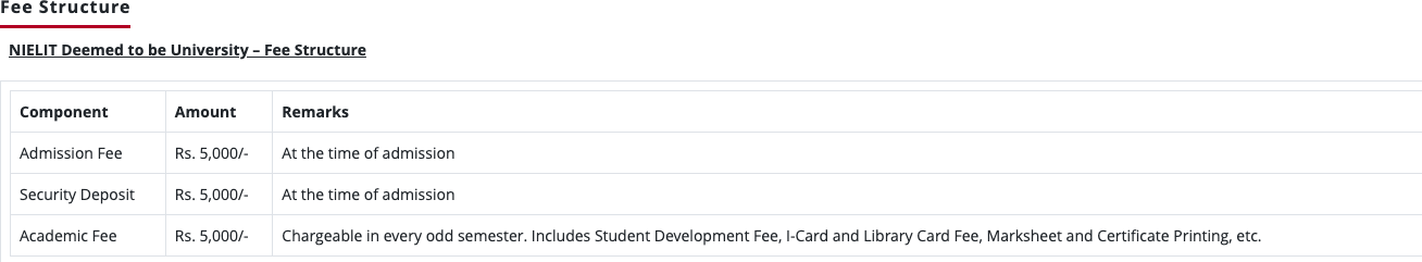 - This includes a total tuition fee of ₹ 3 Lakhs, Caution Fees of ₹ 5,000, Other Fees of ₹ 20,000.
