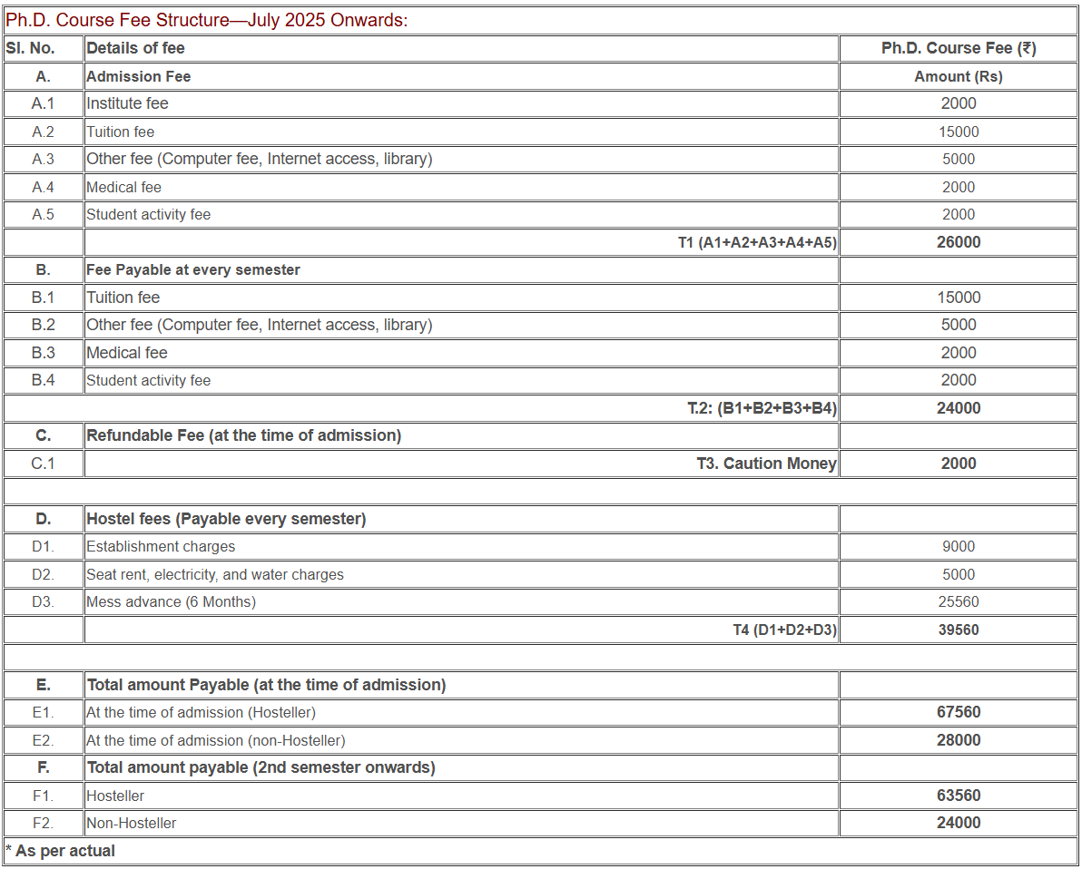 NIAMT Ph.D Metallurgical & Materials Engineering fees 2025 is ₹ 1.48 Lakhs for the entire course duration.