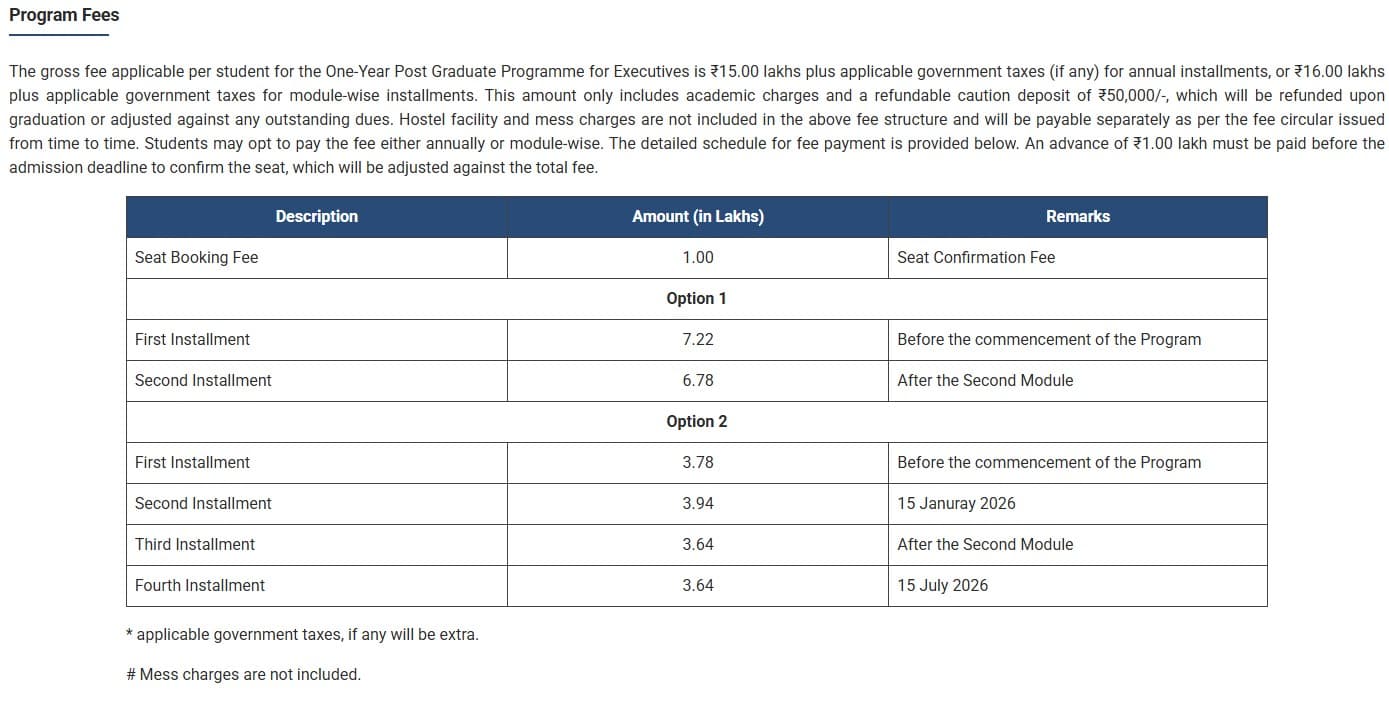 Earlier, PGPEX fees at IIM Mumbai was ₹ 15 Lakhs (in 2025) for the entire course duration. This shows that the fee has remained unchanged since 2025.