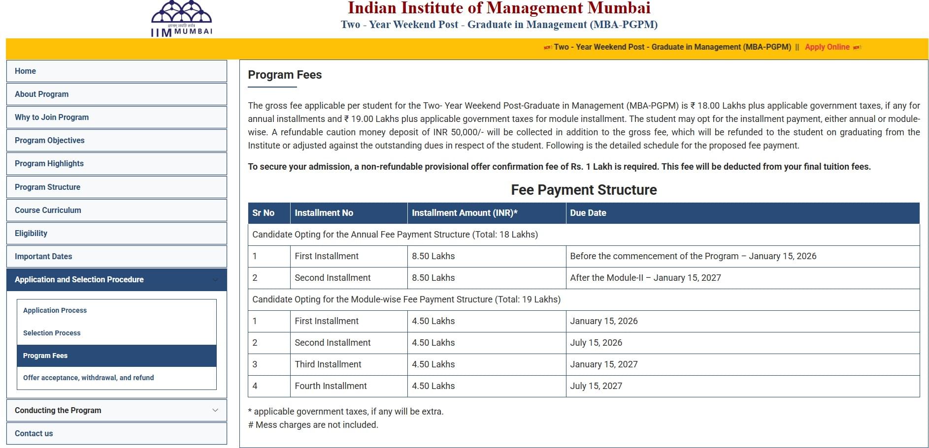 Earlier, MBA fees at IIM Mumbai was ₹ 15 Lakhs (in 2025) for the entire course duration. This shows a fee increase of ₹ 3 Lakhs over the year.