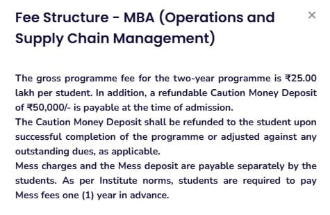 - The total fees for the MBA Operations & Supply Chain Management program at IIM Mumbai is ₹ 25.5 Lakhs.