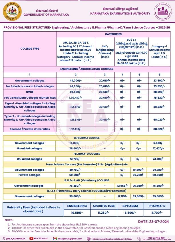 | Payment of Caution Deposit for Round 1 KEA UGCET 2025 [BE/B.Tech] | Sep 06, 2025 - Sep 08, 2025 |