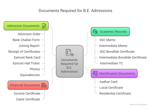 Documents required for B.E. admissions at NSAKCET Hyderabad: