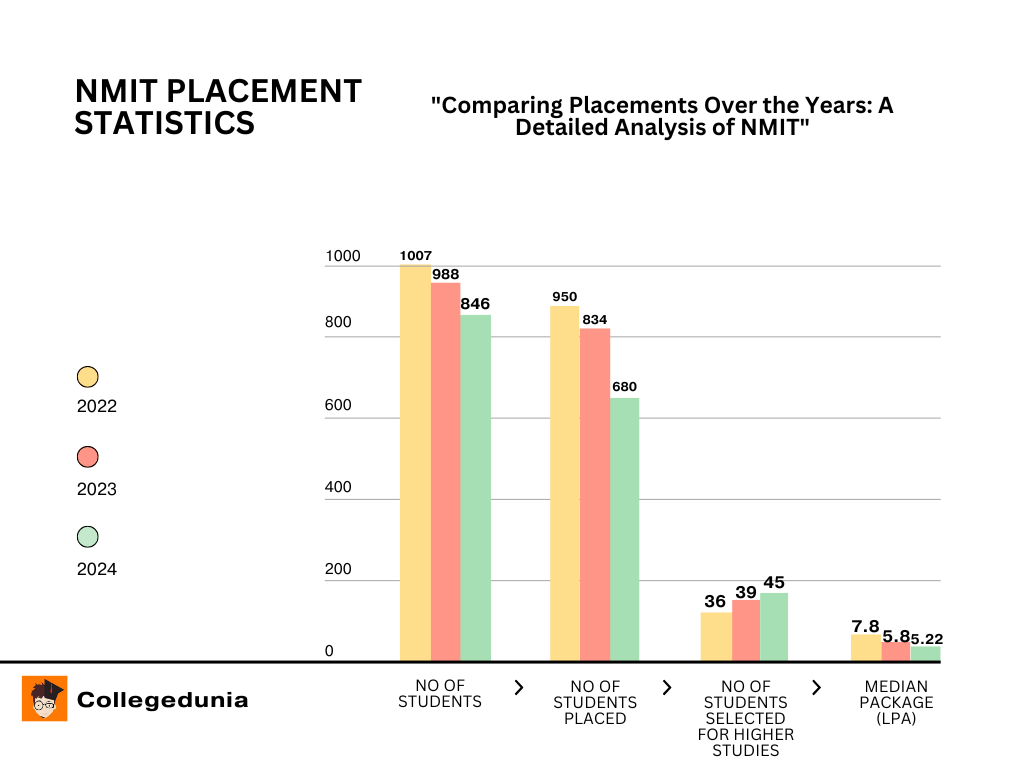 NMIT Placement 2025 report has not been released yet. However, in 2024, the median package offered was INR 5.22 LPA, while in 2023 it was INR 5.8 LPA. Oracle, Accenture, Cognizant, Wipro, Capgemini, PWC, Phonepay and many more are the past recruiters at NMIT Placements.