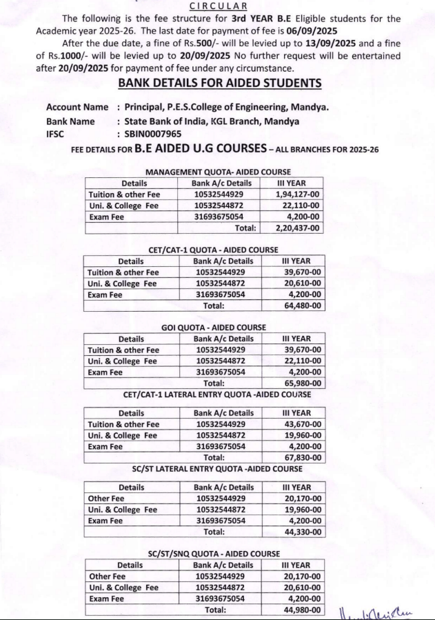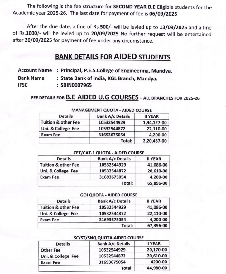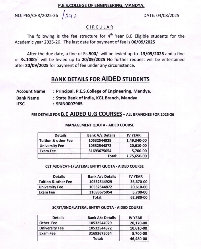 PESCE Mandya admits students primarily through the Karnataka Common Entrance Test (KCET). The college boasts a faculty of 250, with 50 Ph.D. holders, maintaining a 1:20 teacher-student ratio. Fee structures vary: government-aided mechanical branch students pay INR 18,000 annually via KCET, while unaided branches cost INR 25,000, and COMEDK entrants pay about INR 1,50,000. Scholarships ease financial burdens for KCET students, with options like the Vidyasiri Scholarship providing INR 25,000.
