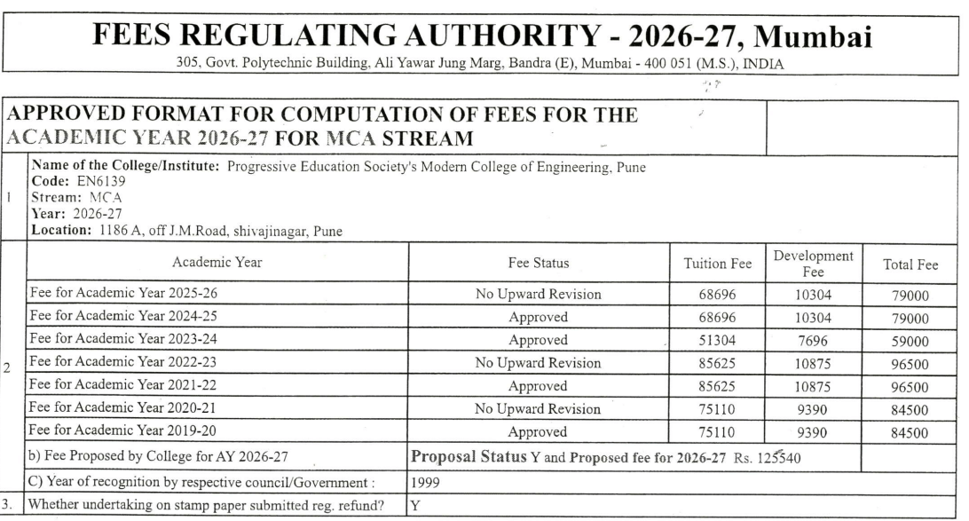 The college's fee structure is flexible, allowing installment payments and offering EBC and scholarship options. Initially, the first-year fee was 67,200 INR, later revised to 80,854 INR. Fees generally increase by 6-8% annually, and students must also pay semester exam fees. In 2014-15, 98 students found placements in IT firms like Alchemist Ark, Zensar, and Hexaware, with salaries ranging from 1.8 lakh to 3.8 lakh INR. The placement rate was about 20%.
