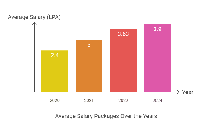 The year-wise average packages offered at RCPIT placements are given below. The average package has constantly been increasing through the years, from 2020 to 2024.
