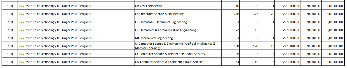 RNSIT Hostel Fee is ₹ 1.4 Lakhs.