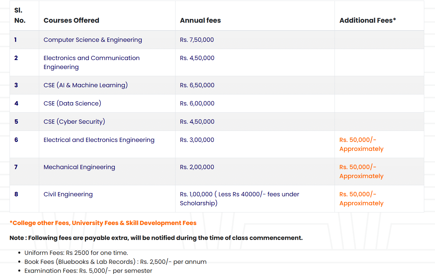 | Fees (2025 - 2026) | Year 1 (in INR) | Year 2 (in INR) | Year 3 (in INR) |