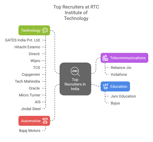 RTC Institute of Technology offers placements to the students. The institution places over 50% of its students with top recruiters and decent packages. The highest package of the institution went to INR 7 LPA, whereas the median salary was INR 2.5 LPA as per students’ review on Collegedunia. Some companies visited are Bajaj Motors, Reliance Jio, GATES India Pvt. Ltd., Hitachi Estemo, etc.