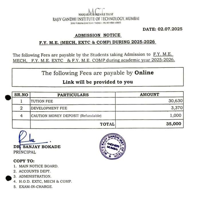 | Upload Date of Cut-off & Admitted Candidates Data for MAHCET 2025 Admissions [M.Tech] | Sep 10, 2025 |