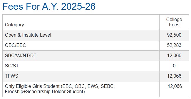 | Fees (2025 - 2026) | Year 1 (in INR) | Year 2 (in INR) |