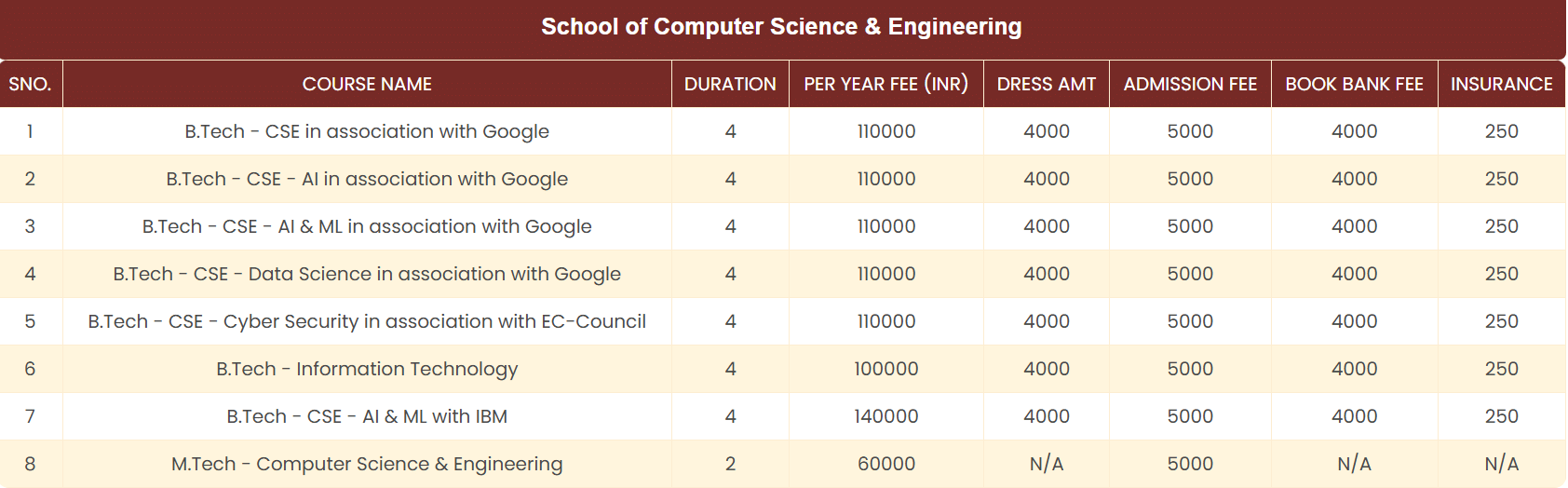 | Fee Type | Total Amount (INR) |