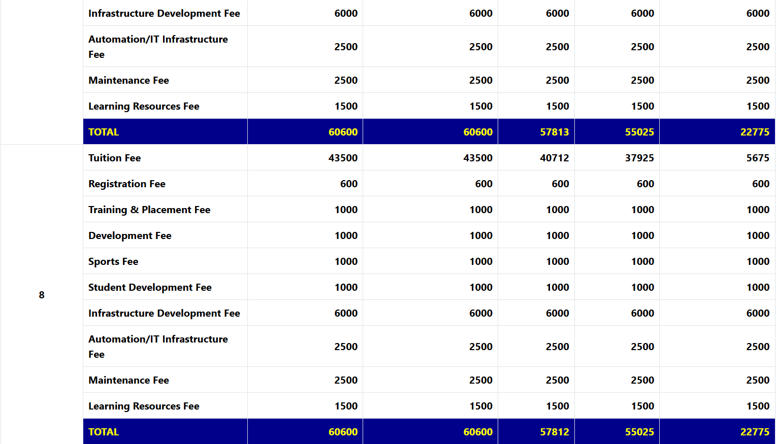 The total 4-year course fee is approximately Rs 320,000, with hostel fees at Rs 50,000 per year. Additional scholarships through the National Scholarship Portal offer Rs 30,000 to Rs 40,000 annually, and fees may vary based on quotas and parental rank in paramilitary forces.